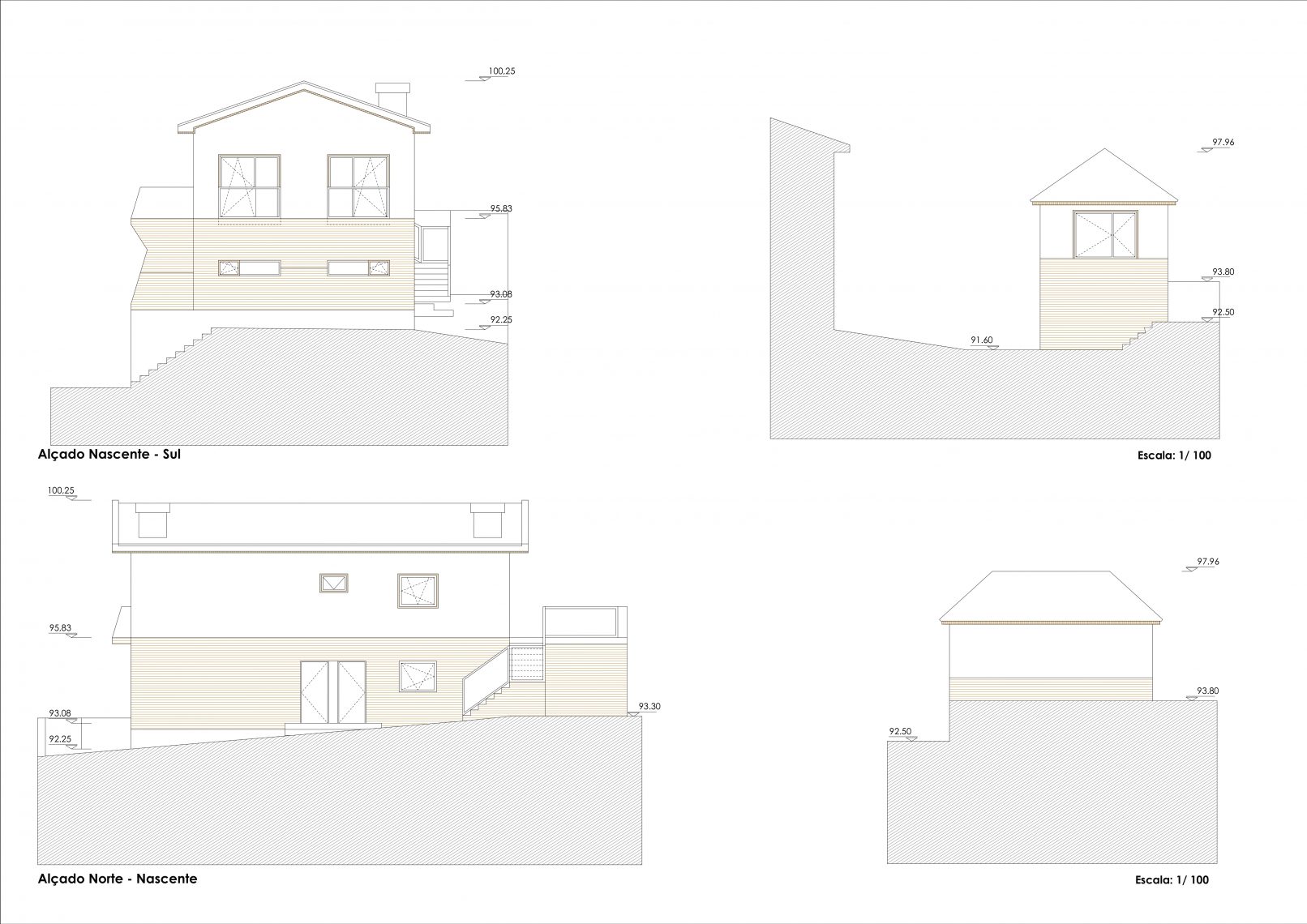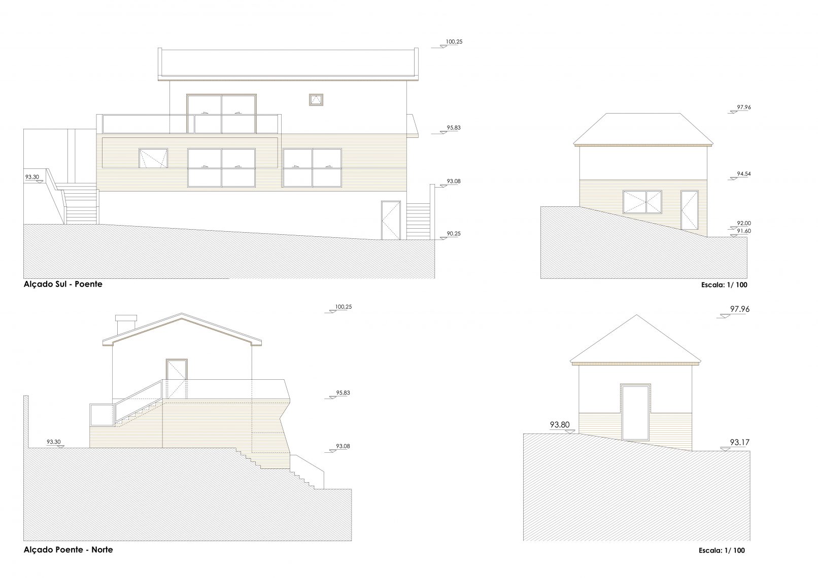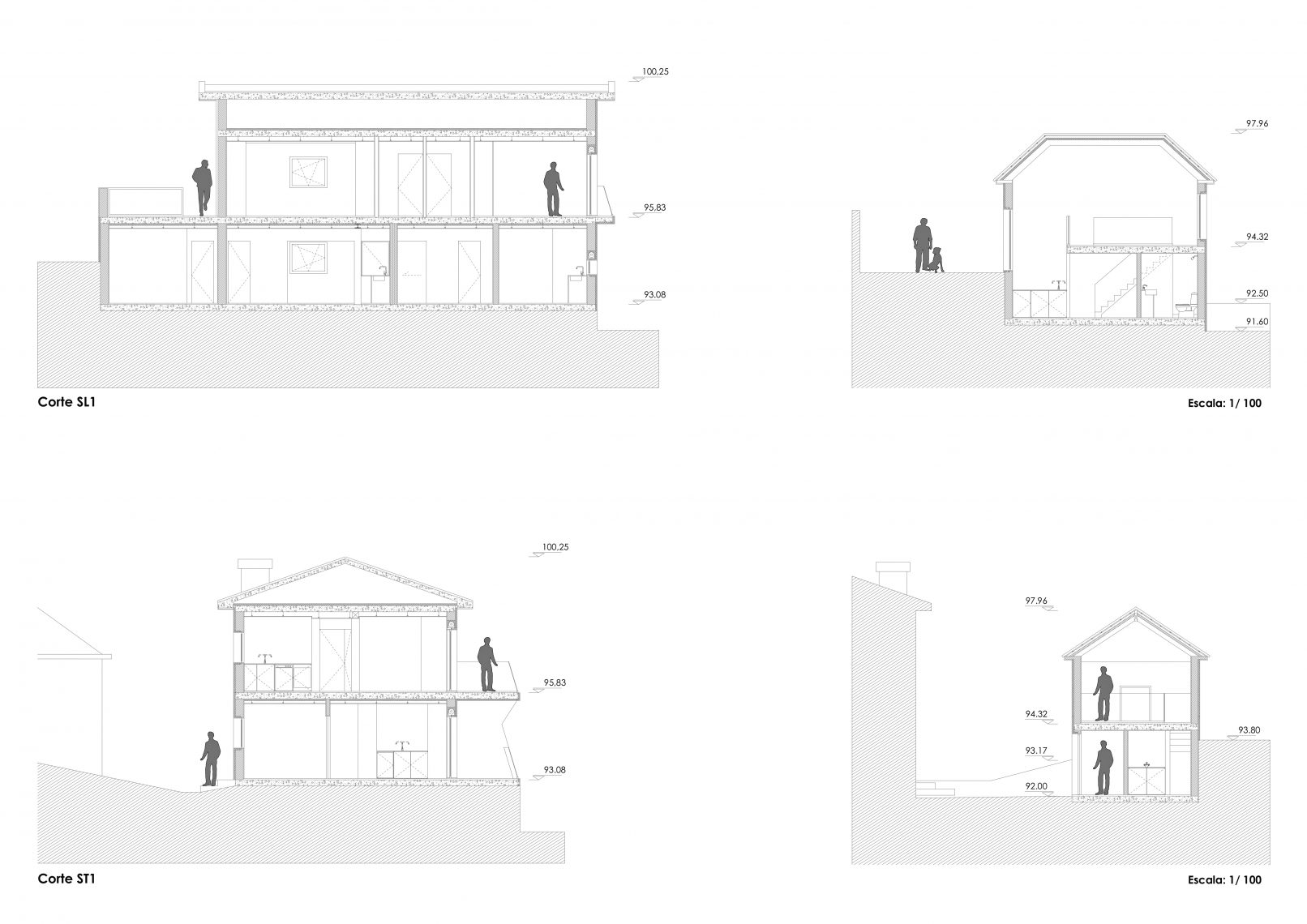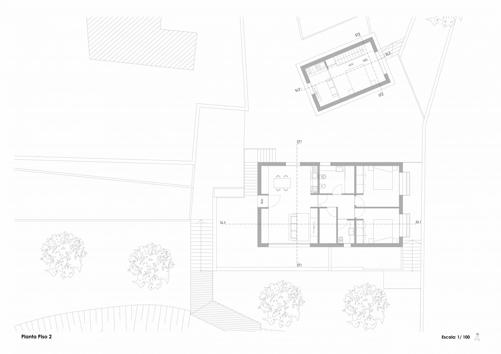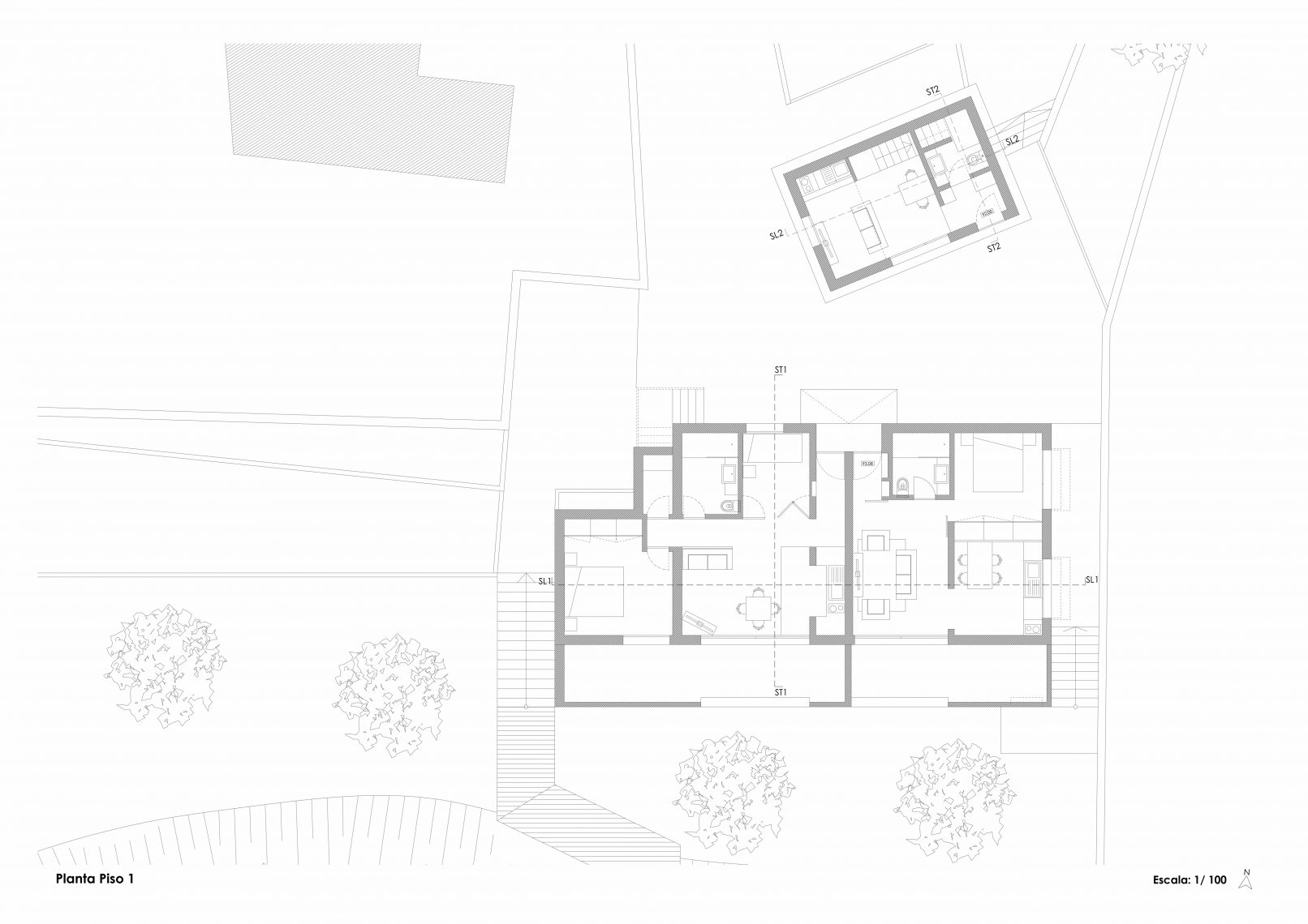 Com um terreno íngreme composto por vegetação densa e com vista sobre o Rio Tâmega, a proposta procura criar uma ligação entre as habitações e o rio através de vãos orientados na sua direção.