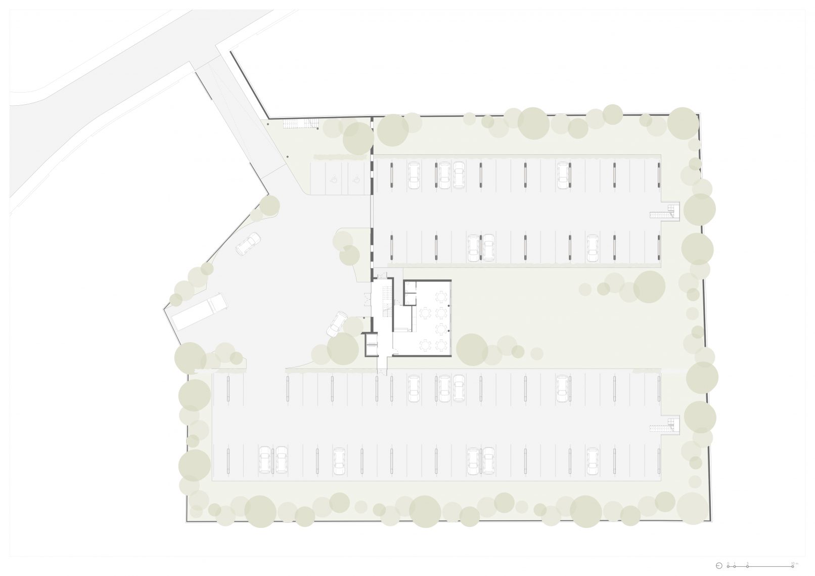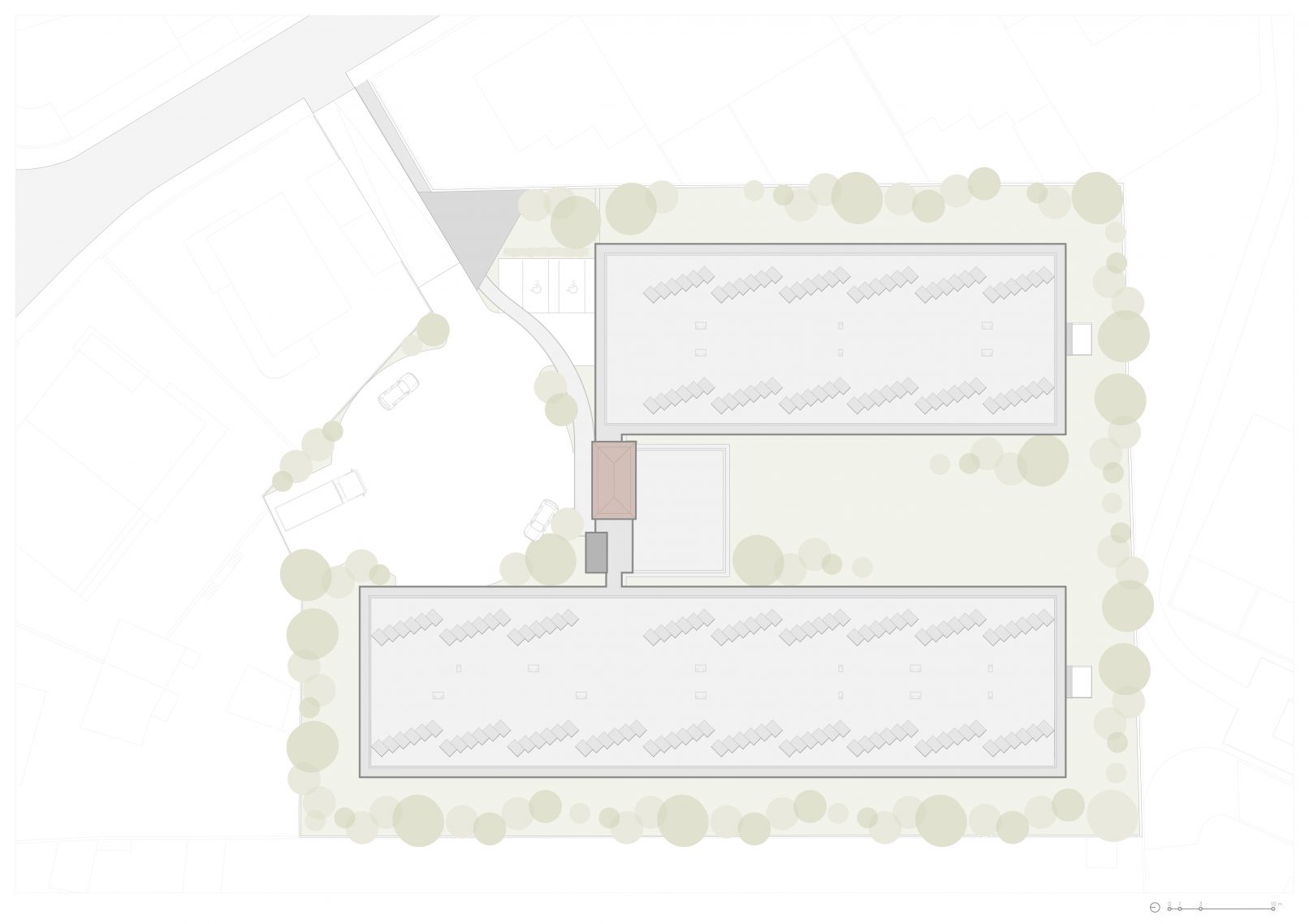 Os volumes propostos estão desenhados em pilotis, mas não só pela natural contaminação do funcionalismo arquitetónico se não antes porque o terreno possui a salvaguarda hídrica de não ser adequado para a construção de caves. Assim, optou-se por não interferir nos níveis freáticos e propor uma solução que só tocasse o solo quando estritamente necessário.