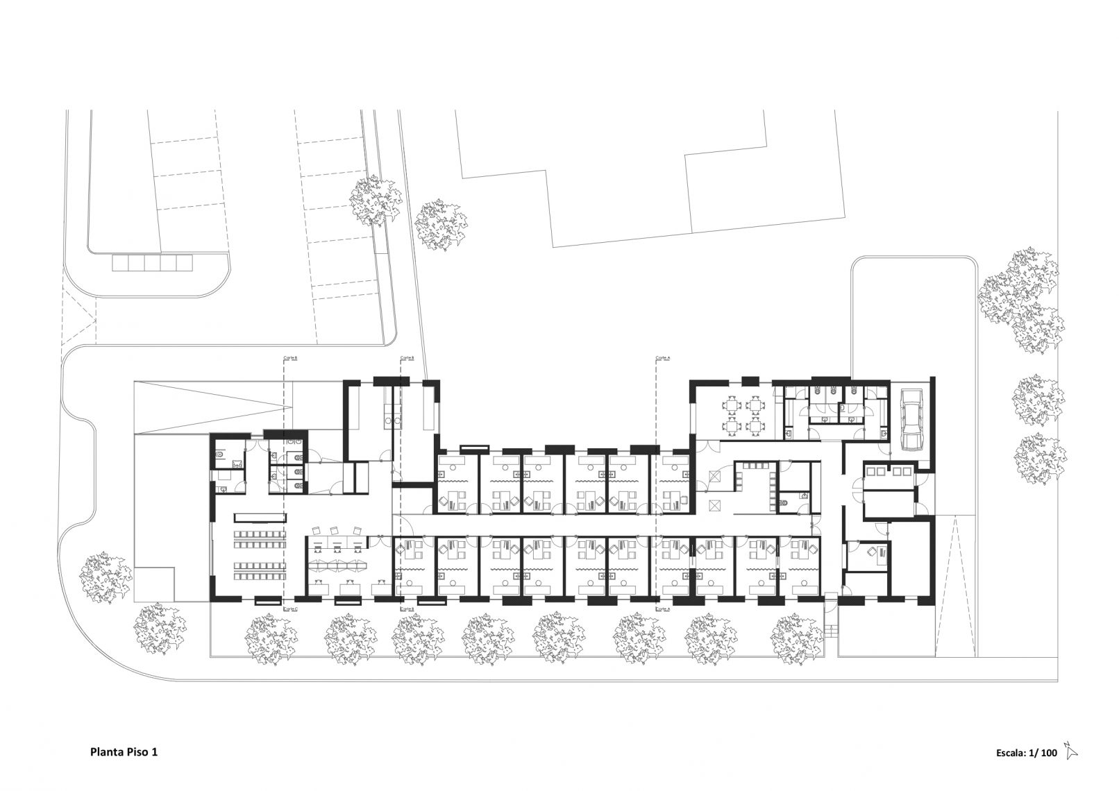 Desenhou-se um equipamento de saúde marcado pelo rio este e equipamentos locais. O volume representa uma linguagem contemporânea que dialoga com a envolvente e ao mesmo tempo torna-se um espaço de uso público.